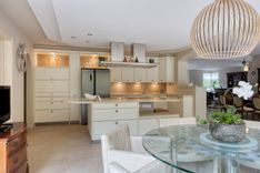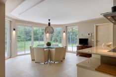 De volledig uitgeruste, moderne keuken met centraal kookeiland vormt het hart van de woning, waar u dankzij de grote raampartijen van vloer tot plafond de hele dag door geniet natuurlijk daglicht en een prachtig zicht op de tuin. Vanuit de keuken en eetkamer heeft u een directe verbinding met het ruime terras en de groene tuin, perfect voor gezellige avonden met familie en vrienden.