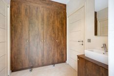 Daarnaast is er nog een tweede, ruime badkamer met ligbad, douche en twee afzonderlijke wastafels. Een afzonderlijk toilet en een praktische was- en bergruimte vervolledigen deze verdieping. Verder beschikt deze instapklare woning over een ruime (berg)zolder bereikbaar via de wasruimte, evenals een kelder met garage voor drie tot vier wagens.